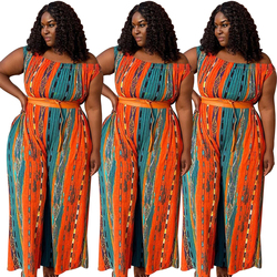 공장 핫 세일 플러스 사이즈 지방 여성 캐주얼 점프 슈트 스트라이프 점프 슈트 romper